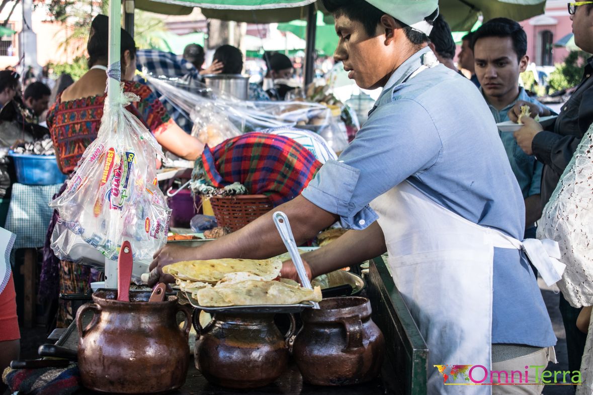 Gargotes : Sur le parvis de l’église la Merced, s’installent, en particulier les samedis et dimanches, des gargotes où l’on peut manger pour une dizaine de Quetzal des tostadas, du mole de bananes plantains et autre cuisine de rue.