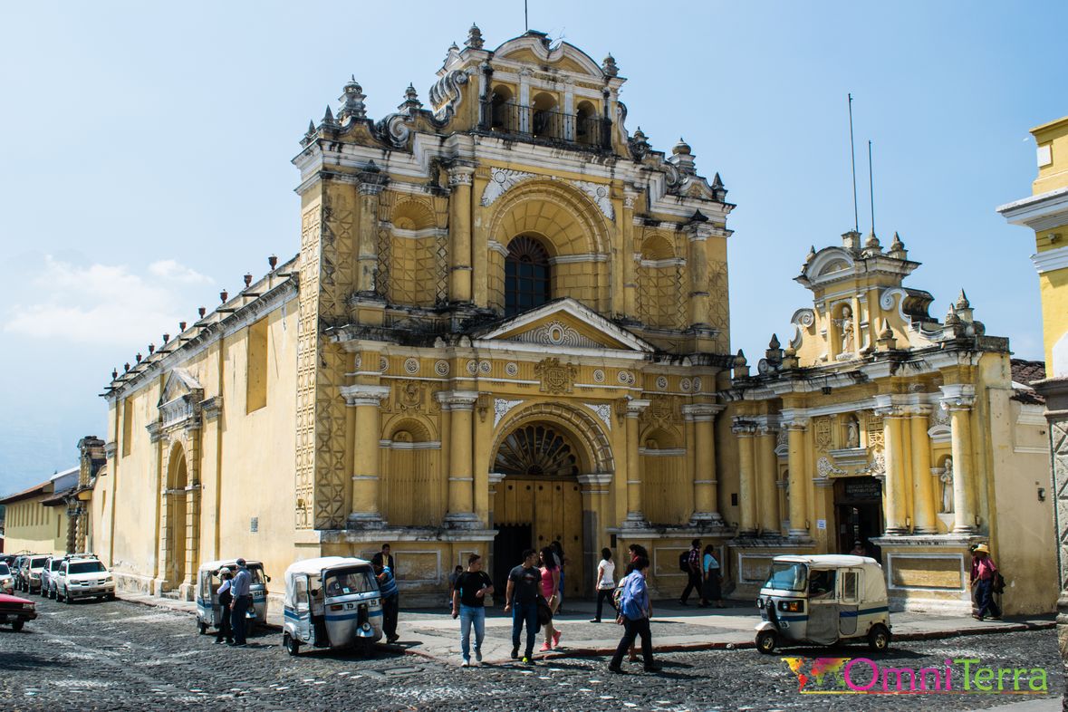 Nous n’avons pas de parcours précis pour visiter la ville et marchons de ruines en ruines et d’églises en églises. Le samedi, l’atmosphère est grouillante aux abords des lieux de culte et sur les marchés. Le marché d’artisanat Carmen déborde dans la rue; Plus à l’ouest, le marché alimentaire est un véritable dédale de stands de nourriture où la mesure ne se fait pas en gramme mais en main (5 ou 10Q la main d’avocats, de mangues etc). Derrière le marché, se trouve la gare routière d’où partent tous les Chicken Bus, ces anciens bus scolaires américains convertis en bus publics et décorés au goût local.