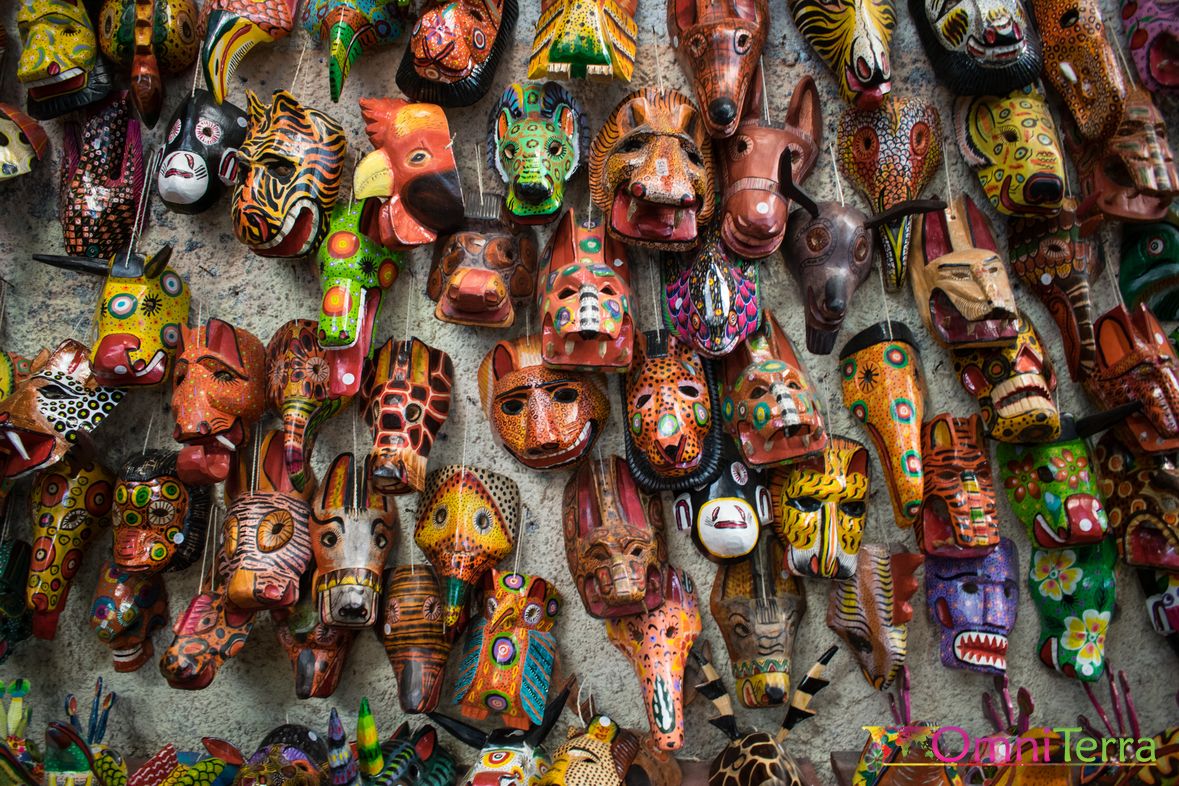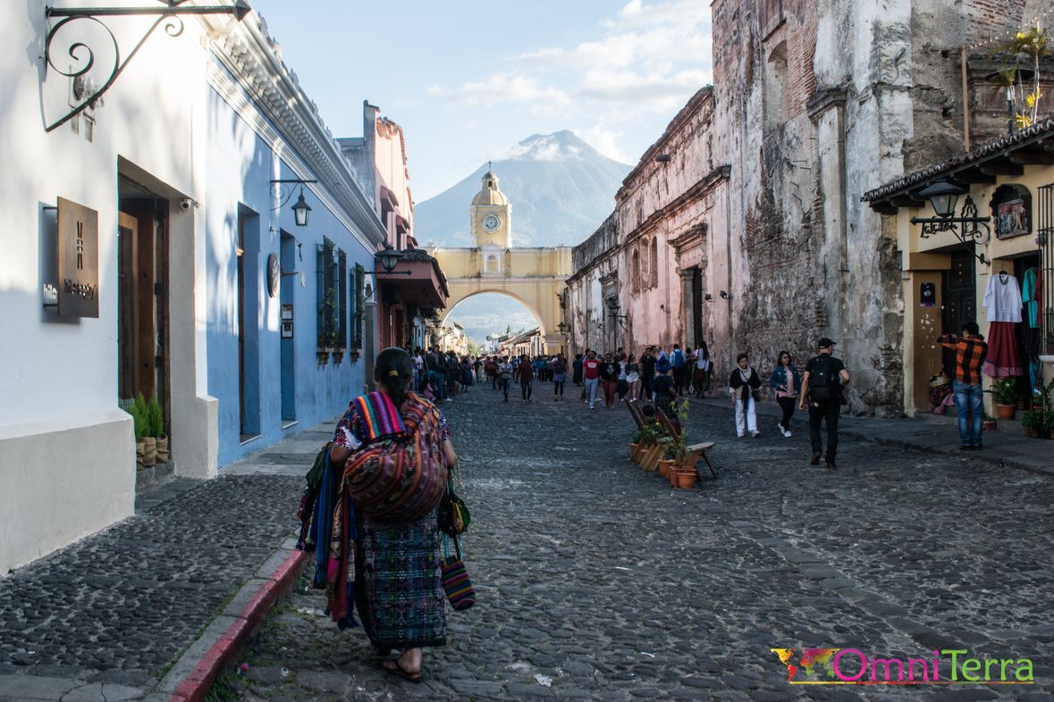 Les rues sont animées. Les vendeuses ambulantes, bardées d’artisanat approchent les badauds; Les touristes se mêlent au locaux sur la place du Parque Central ; Les familles investissent les églises à l’heure de la messe; Les visiteurs s’agglutinent sous l’arche de Santa-Catalina de jour comme de nuit et immortalisent la beauté de cette ville classée au Patrimoine Mondiale de l’Unesco. Non loin de l’arche, nous nous arrêtons à la boutique Nim Pot qui présente un beau bric à vrac d’artisanat, nous donnant un avant goût des spécificités vestimentaires des communautés qui composent le Guatemala.
