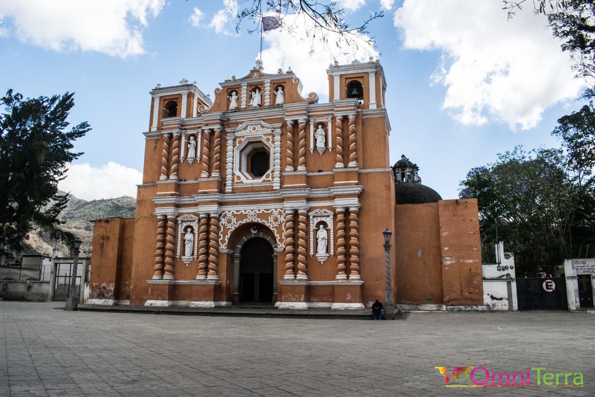 Pour notre dernier jour à Antigua nous décidons de rejoindre la ville voisine à pied. Jocotenango est une version moins touristique d’Antigua. Pourtant la ville est colorée et est très agréable, à l’exception de la rue principale qui est assez passante (bus) et bruyante. L’église est kitsch à souhait. Sur la place principale, un homme à l’haleine chargée de vapeurs d’alcool et visiblement assez éméché nous aborde. Il nous entraîne dans l’église et nous inonde de détails sur les pratiques religieuses des habitants. La Semaine Sainte approche à grands pas et les préparatifs pour les festivités vont bon train.