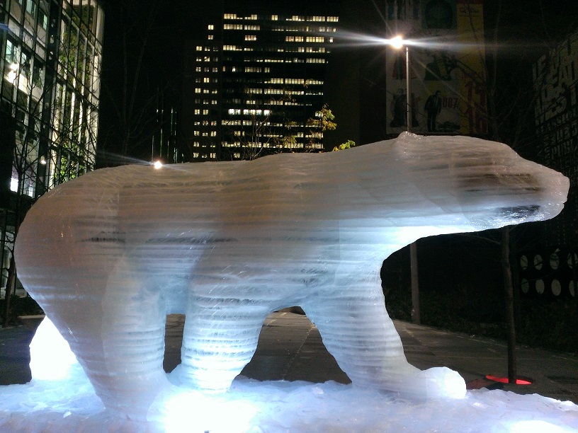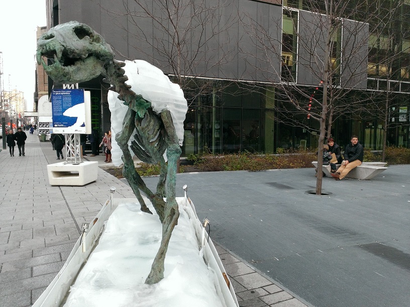 Ours polaire sur glaces éphémères est un projet artistique allégorique, soutenu par Équiterre et WWF dans le cadre de la COP21, dont l’objectif est de sensibiliser les Canadiens au réchauffement climatique : la fonte de l’ours de glace révèle son squelette en bronze symbolisant la menace d’extinction qui pèse sur les ours polaires affamés et privés de leur habitat. Les ours ne sont pas les seuls à subir ce bouleversement. Avec le réchauffement climatique c’est tout un écosystème et tout un territoire rendus vulnérables.