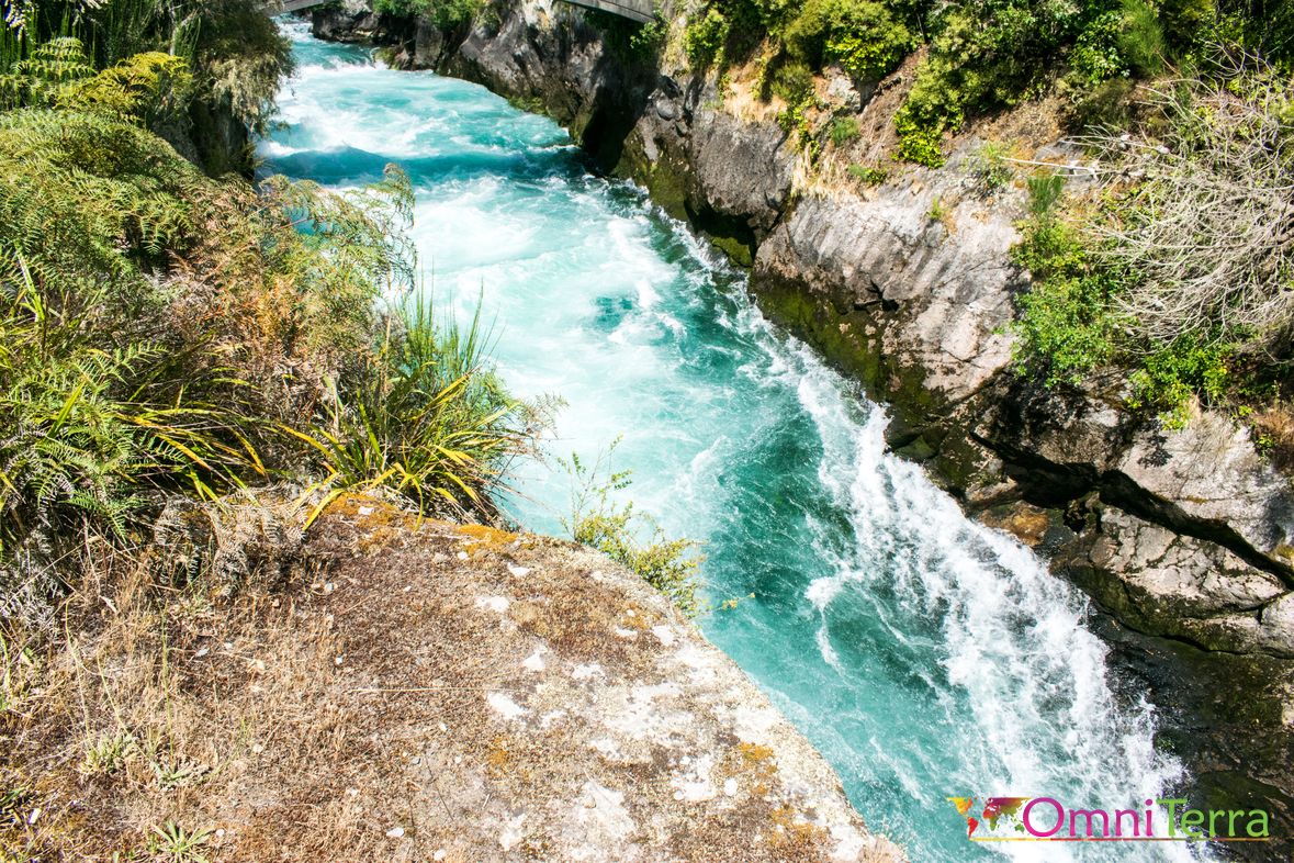 Nous nous échappons rapidement de la mêlée, et continuons de randonner encore quelques kilomètres. Le chemin, qui s’éloigne des berges, est moins impressionnant mais permet de rejoindre les rapides d’Aratiatia. Nous rebroussons finalement chemin et rentrons à Taupo au terme de 4 heures de marche.