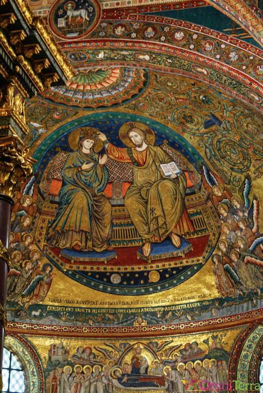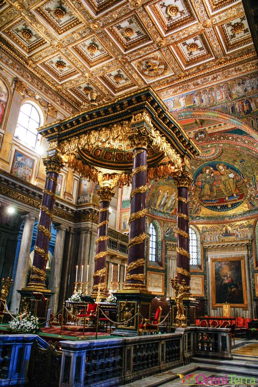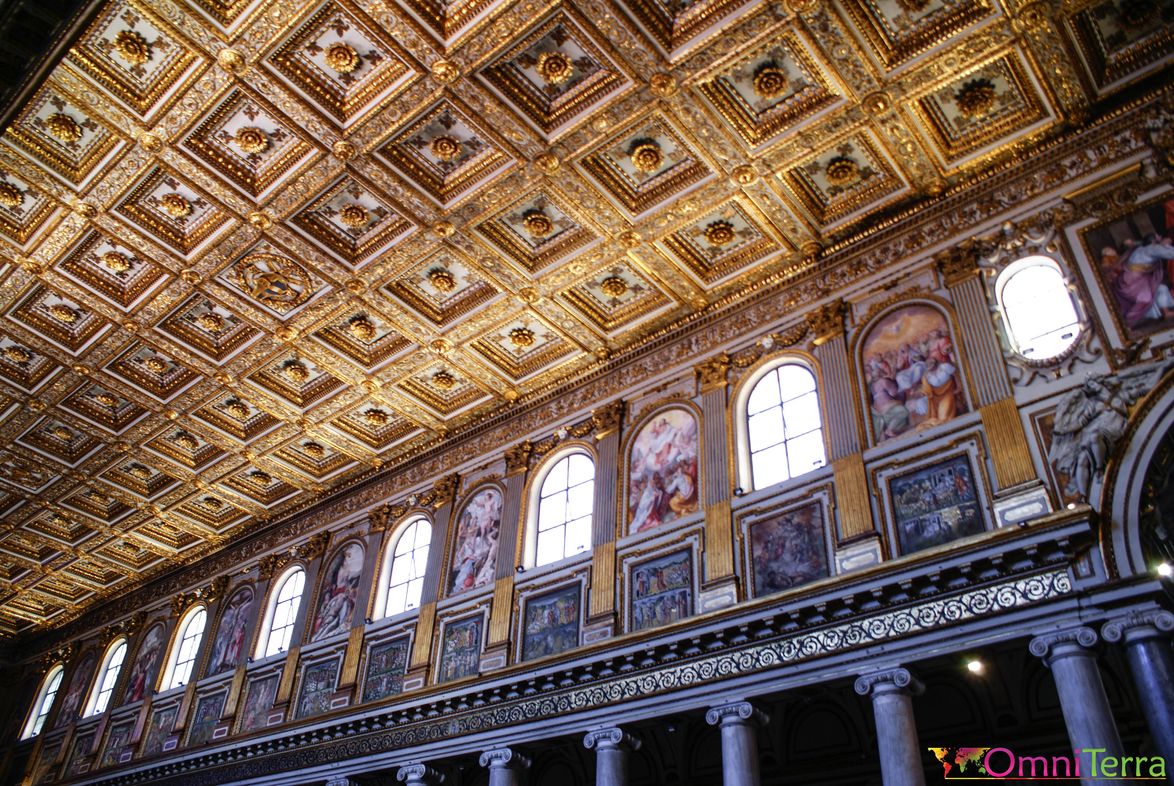 Près de la gare Termini, la Basilique Sainte-Marie-Majeure a été construite sur 13 siècles (5-18ième) et appartient au Vatican bien qu’elle soit au cœur de Rome. L’intérieur est époustouflant. La décoration d’une richesse incroyable avec ses fresques peintes et son plafond à caissons dorés.
